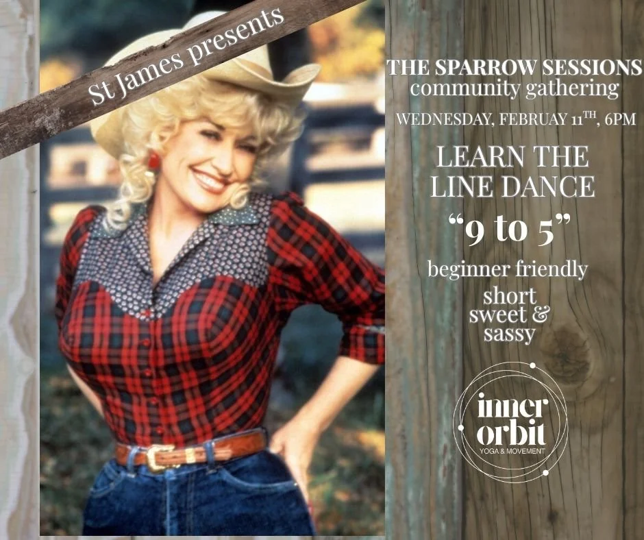 So excited to be a part of the upcoming Sparrow Sessions community gathering. In their February session, I will be teaching a super fun, beginner-friendly line dance to Dolly Parton's 9 to 5! Bring your boots down to the Black Sparrow and let's have some fun, Dolly Style! Doors open at 6pm, class starts at 6:30!